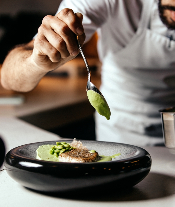 Notre concept repose sur une cuisine créative, raffinée et de saison, avec des produits essentiellement régionaux. Nous privilégions les circuits courts et travaillons en collaboration avec des producteurs locaux.